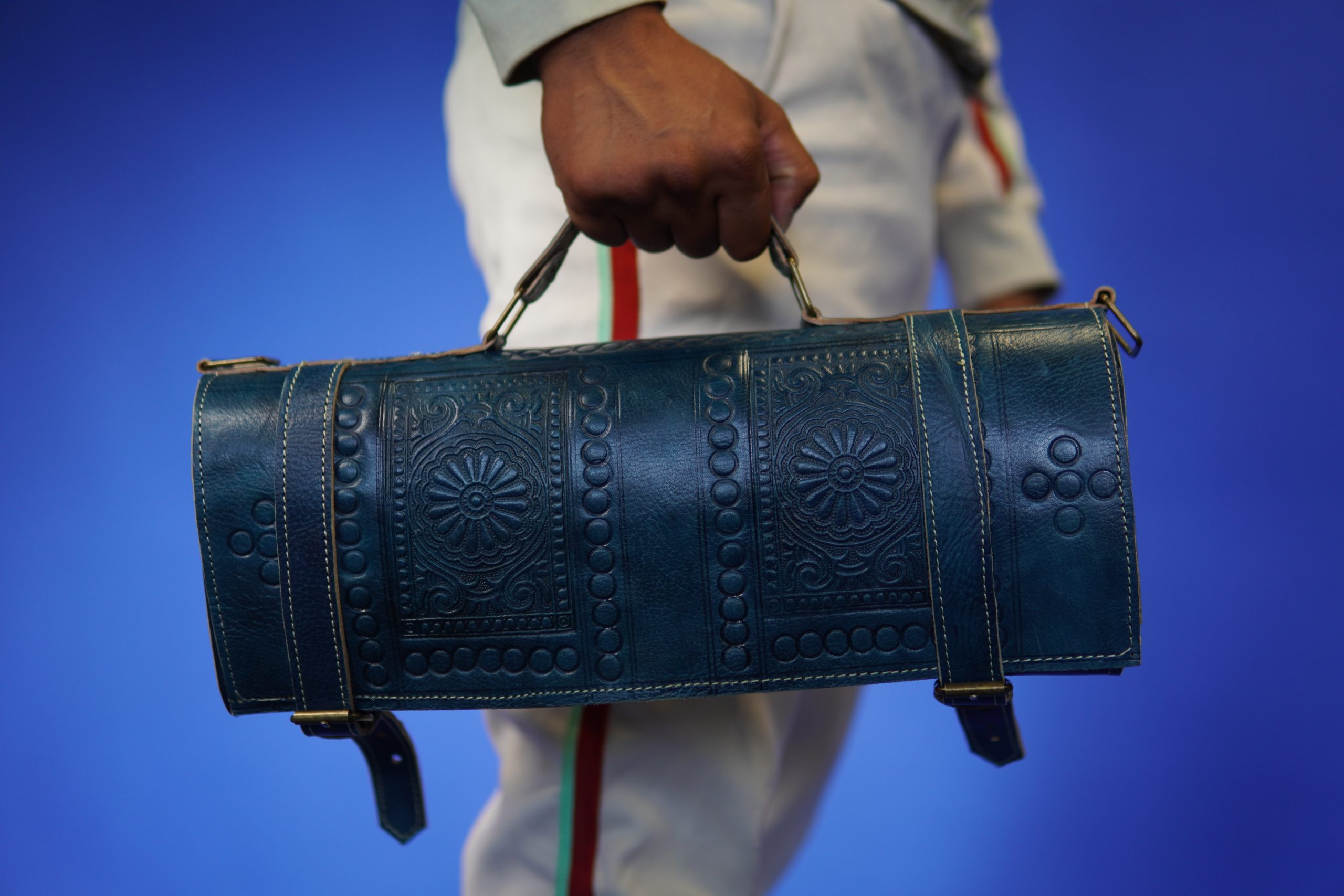 Ce modèle se distingue par sa capacité généreuse : il est équipé de 10 poches soigneusement réparties, permettant d’organiser et de protéger une série complète de couteaux ou d’outils tranchants. Les gravures géométriques, discrètes et élégantes, témoignent d’un savoir-faire artisanal raffiné.