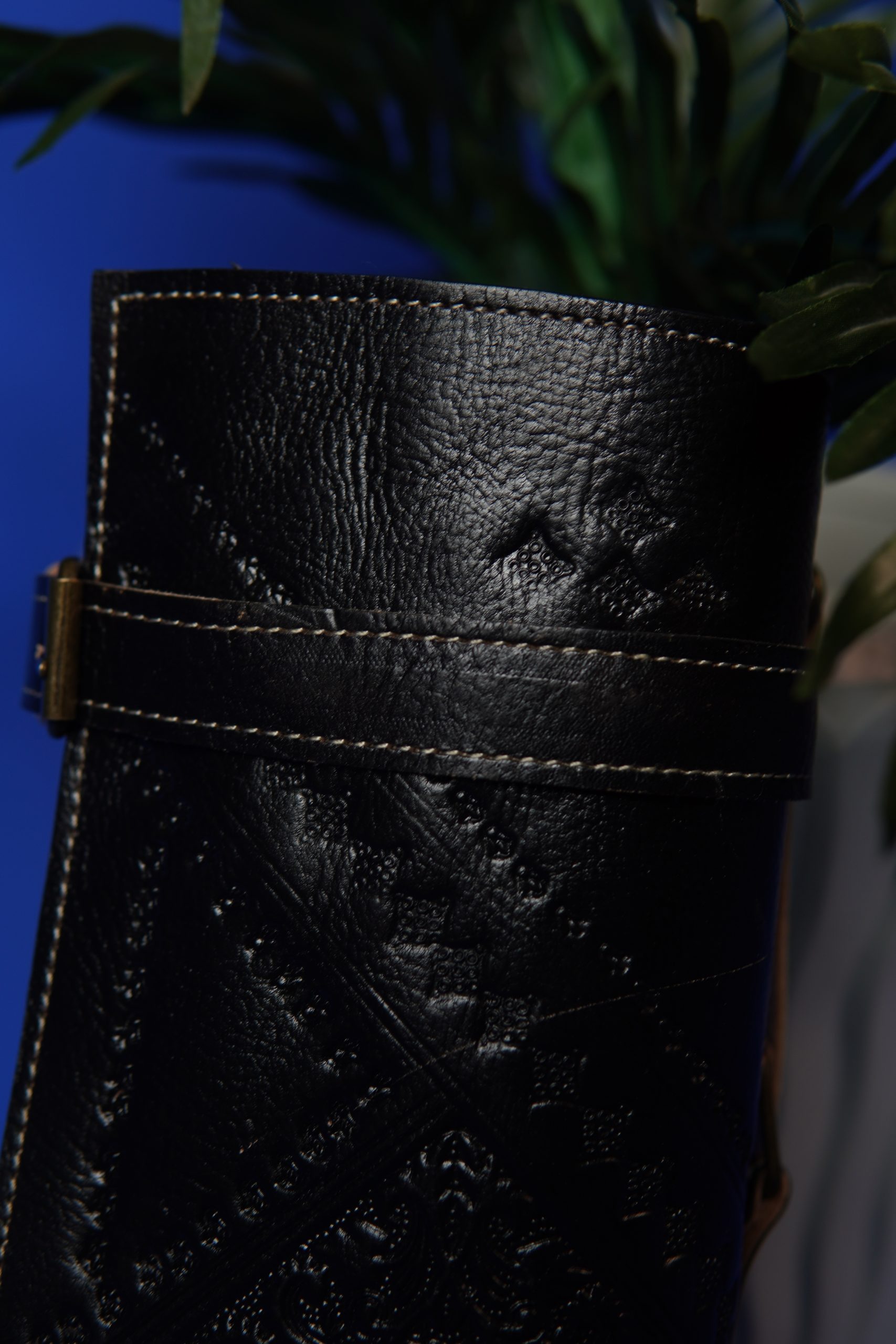 Ce modèle se distingue par sa capacité généreuse : il est équipé de 10 poches soigneusement réparties, permettant d’organiser et de protéger une série complète de couteaux ou d’outils tranchants. Les gravures géométriques, discrètes et élégantes, témoignent d’un savoir-faire artisanal raffiné.